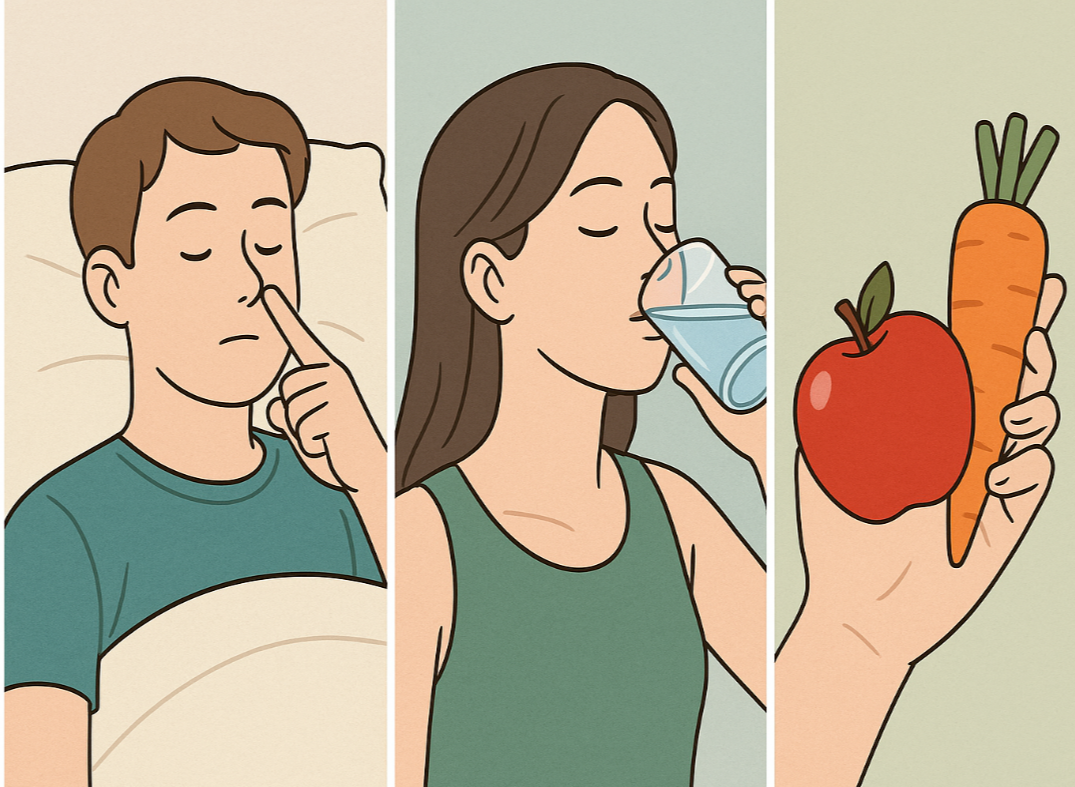 입을 다물고 코로 숨 쉬는 습관을 들이면 구강 건조를 예방할 수 있습니다. 구강호흡이 습관이라면 수면 중 입 벌림 방지 테이프나 자세 교정도 도움이 됩니다.